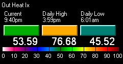 | High Heat Index | 76.7°F at 3:59pm | ||
